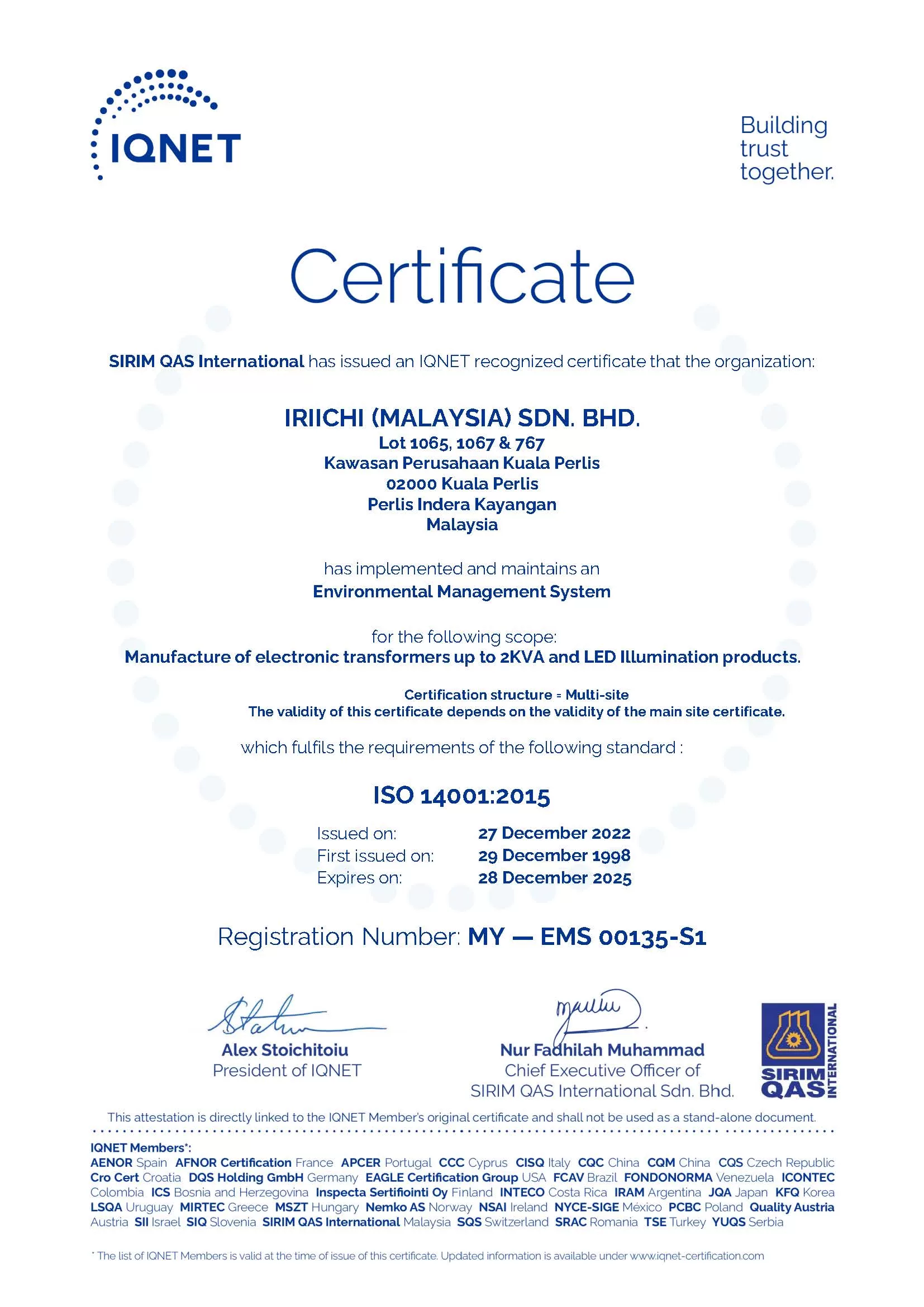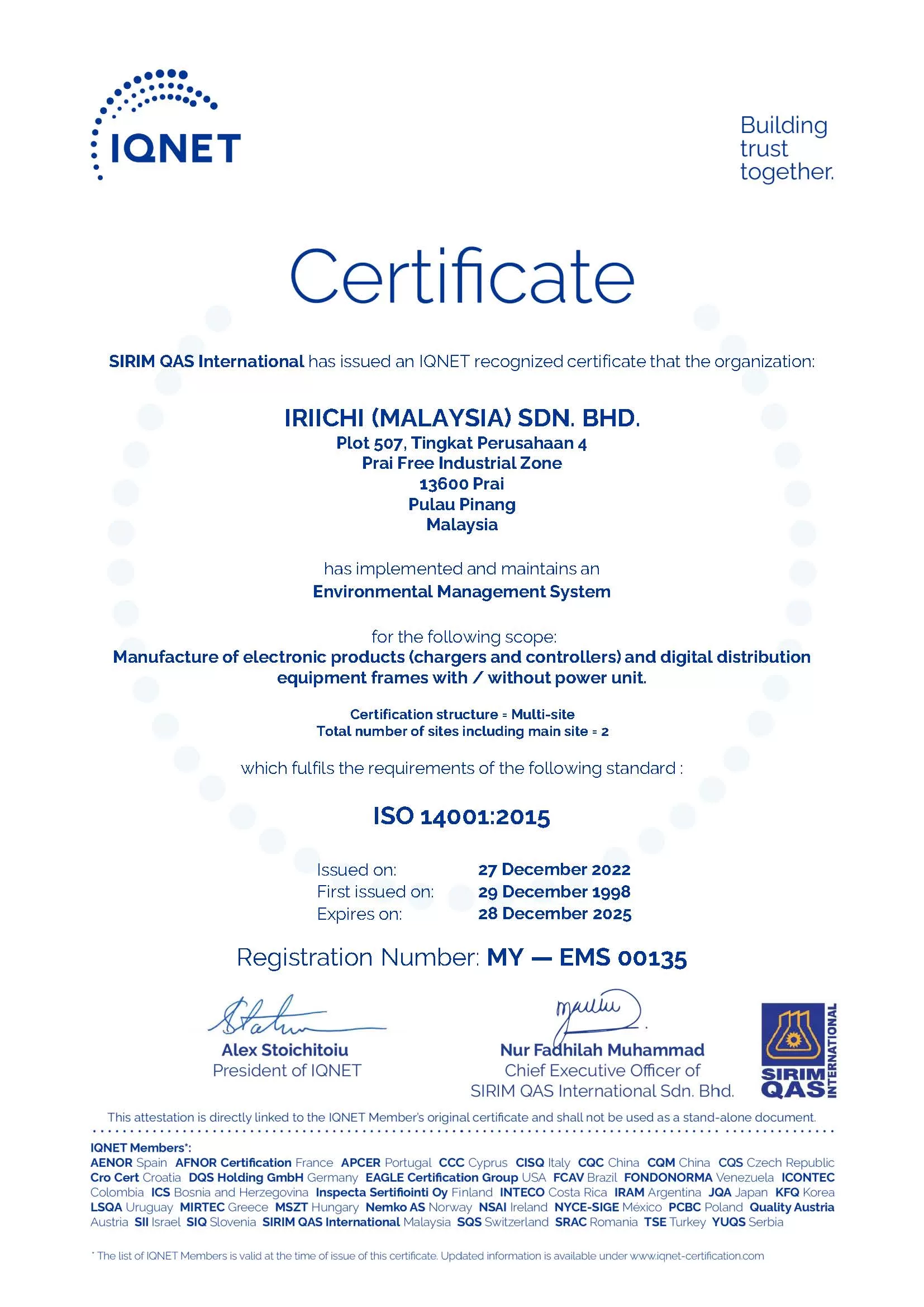 We, IRIICHI (Malaysia) Sdn. Bhd. were established in 1989 as 100% of Japanese joint ventured company by IRIICHI Technologies and Sojitz Corporation.