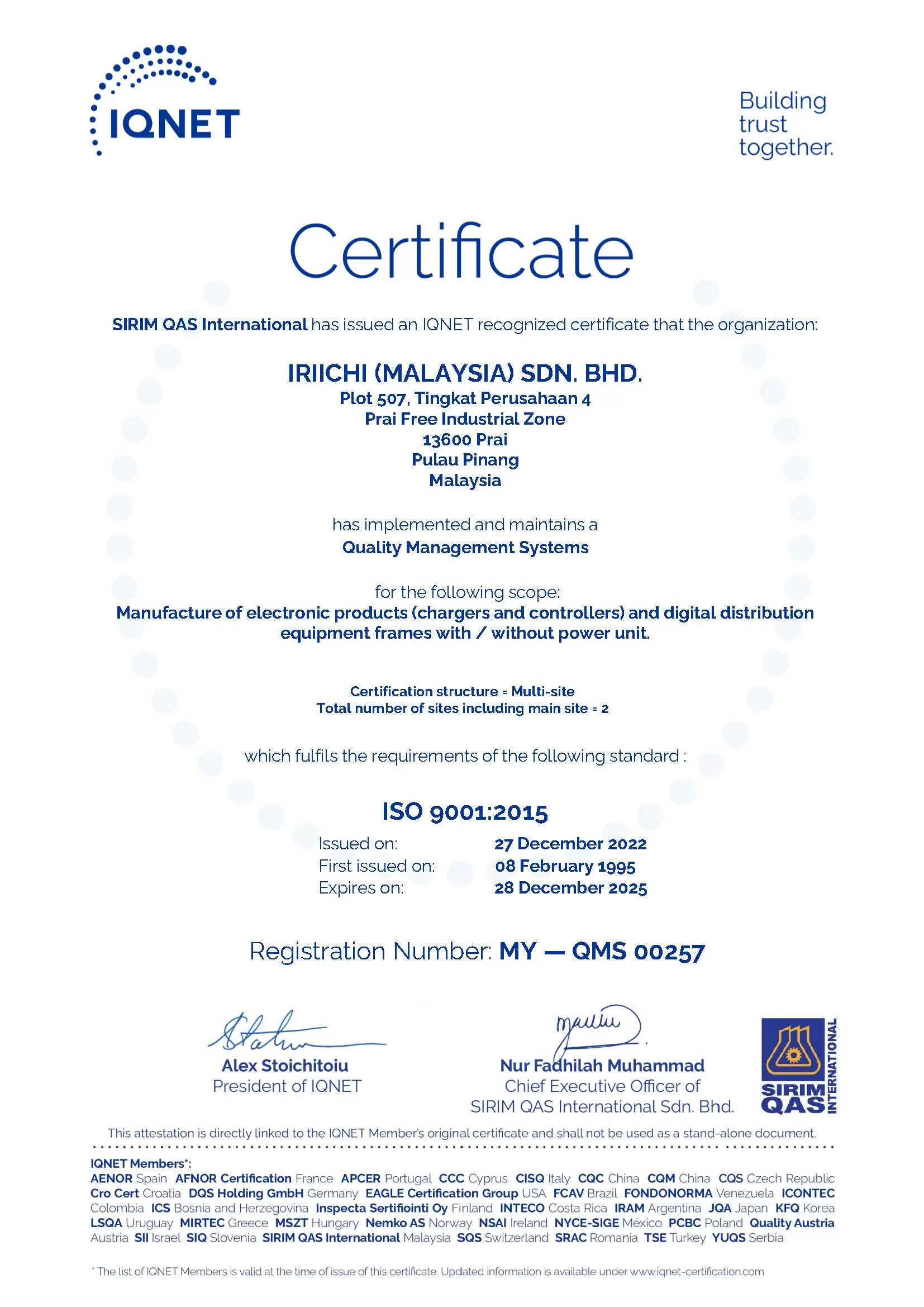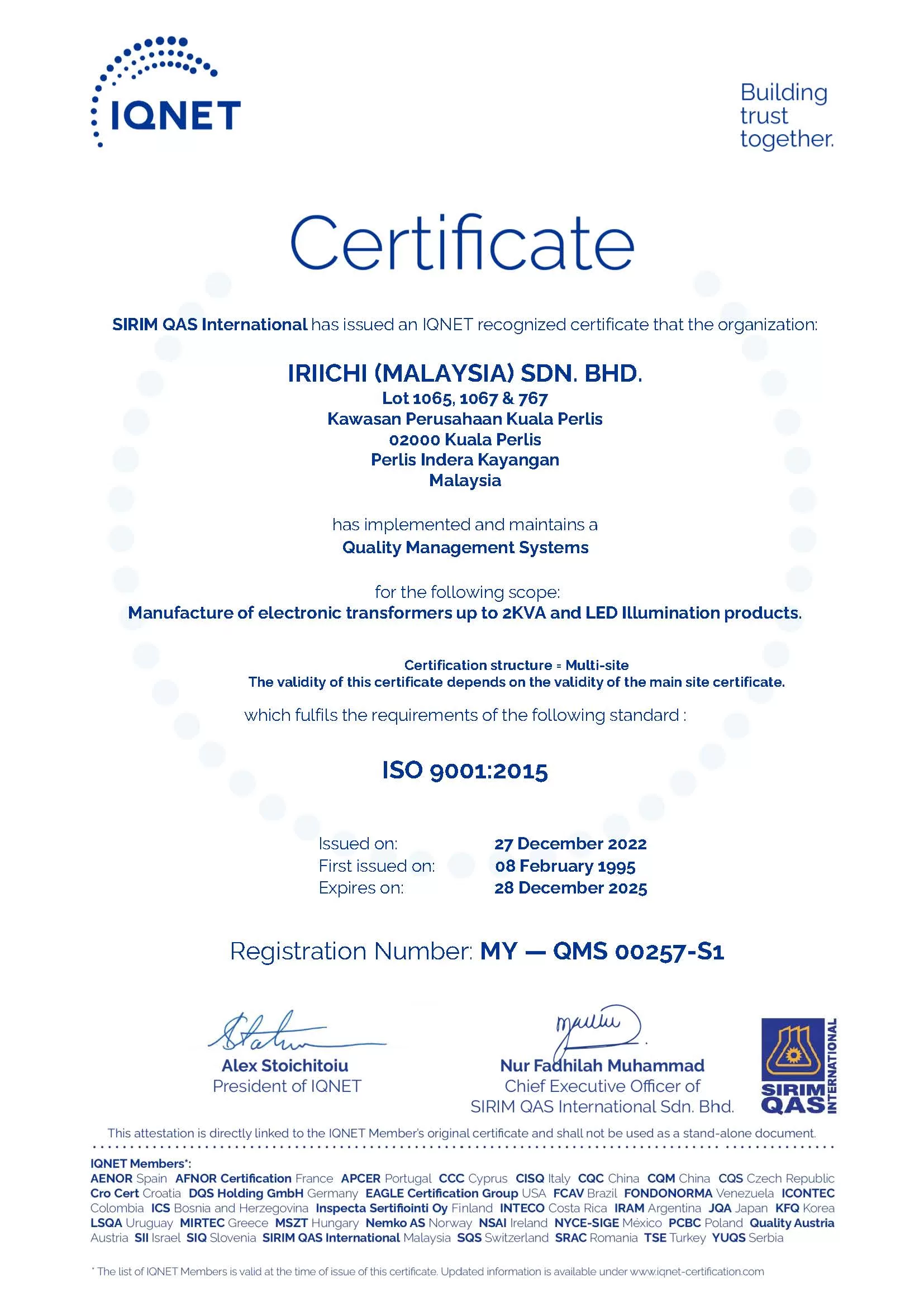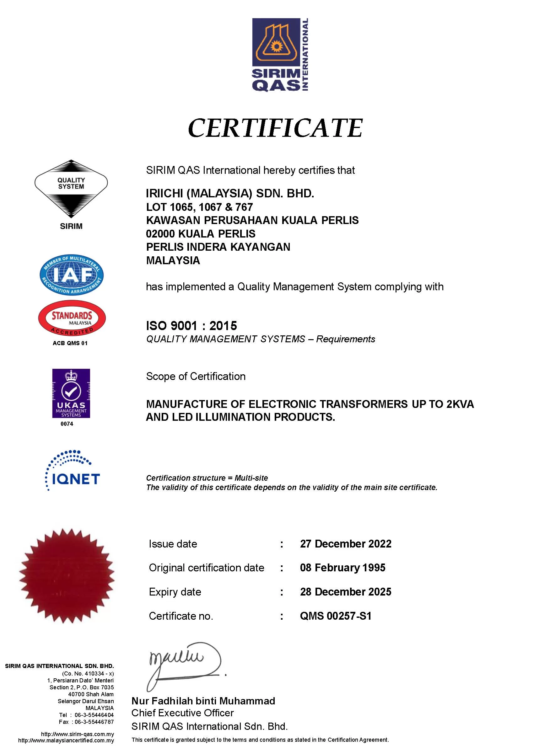 IRIICHI promote continual, decisive effort to enhance product quality and to reinforce its quality management system to achieve our ultimate “ZERO DEFECT”.